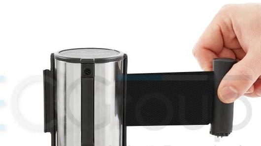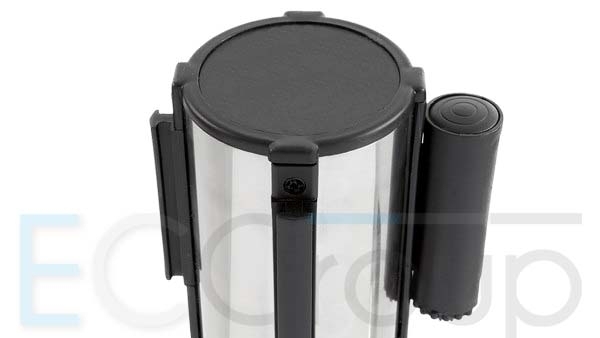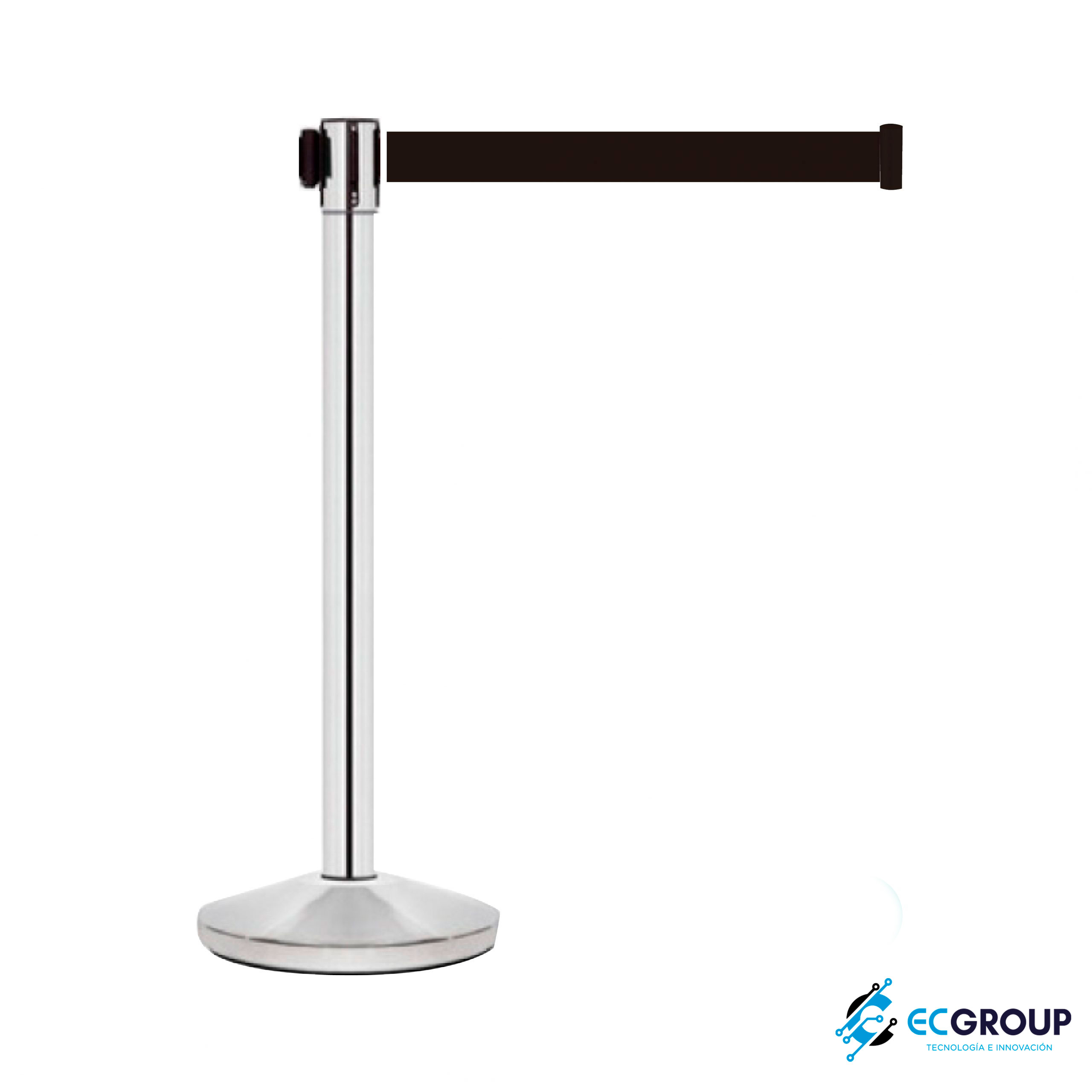 POSTE Y BASE CROMADO CON CINTA RETRÁCTIL COLOR NEGRA