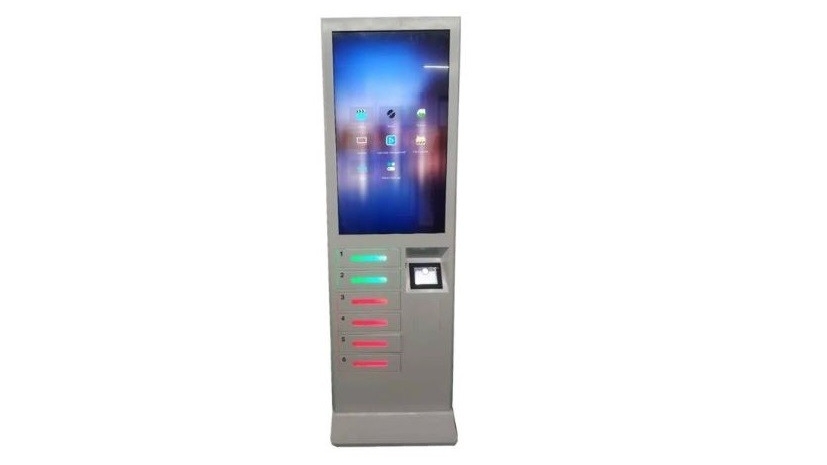 Totem de carga de teléfonos celulares, tienen pantalla táctil HD, casilleros digitales, señalización digital de red, sistema de control remoto. Está diseñado para la función de carga y publicidad, integra el casillero de depósito, el cargador del teléfono y la pantalla de publicidad LCD como «tres en uno», para que las personas puedan conectar su teléfono celular para cargar, pueden quedarse allí viendo videos publicitarios o alejarse para darse una vuelta. El teléfono celular estará bloqueado en la estación de carga hasta que vuelvan a buscarlo.